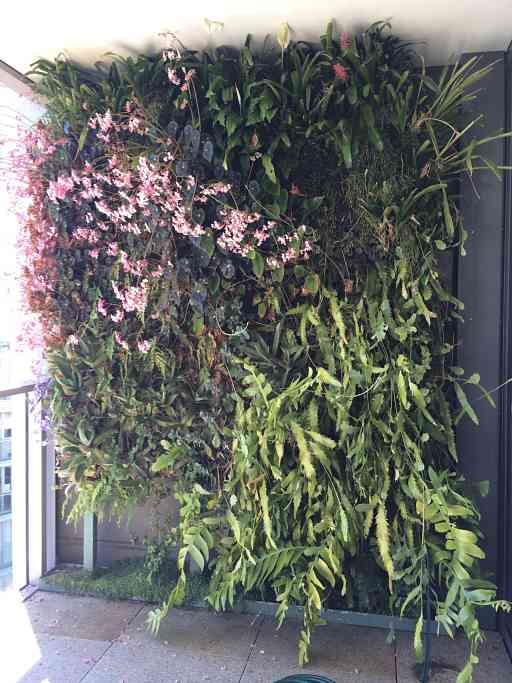 The Greenwall Company which installed and maintains Bunny Gardiner-Hill’s walled garden on her balcony told us a small installation like hers will cost approximately $2000 plus GST per square metre. The lead time is 3–4 months while the plants are planned and propagated.