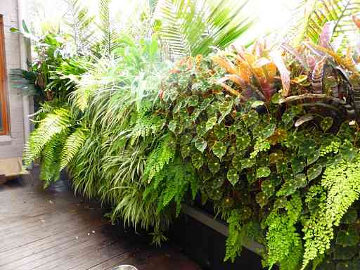 Plants used should not require extensive watering and should be suited to the aspect and lighting conditions of the site. Consult with a horticulturalist for advice.