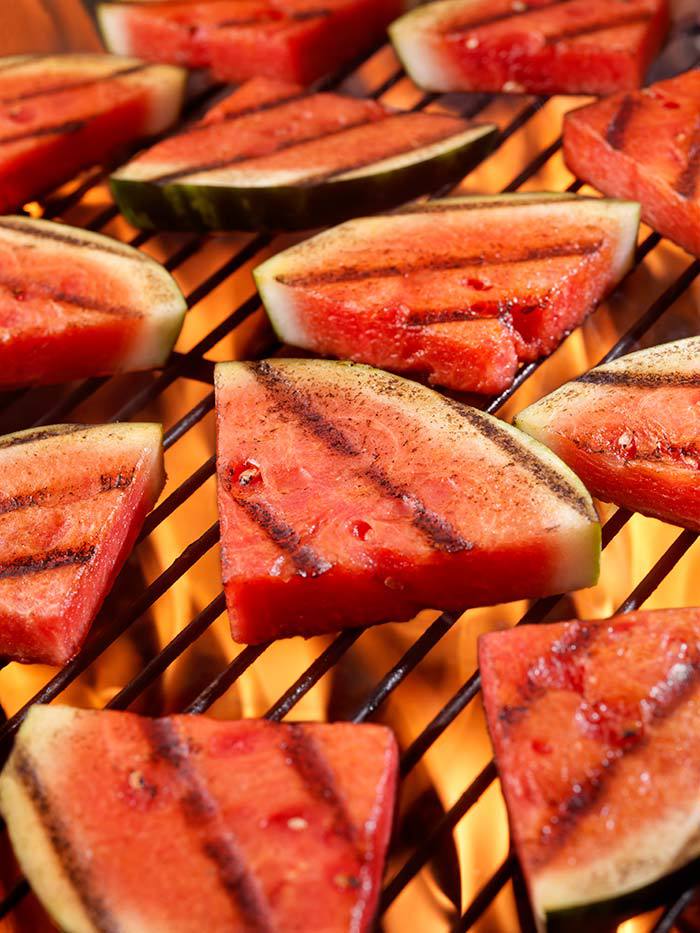 Watermelon is easy to cook on your barbecue. Cut it into 3cm thick slices and leave the rind on so that it stays together better when turning.