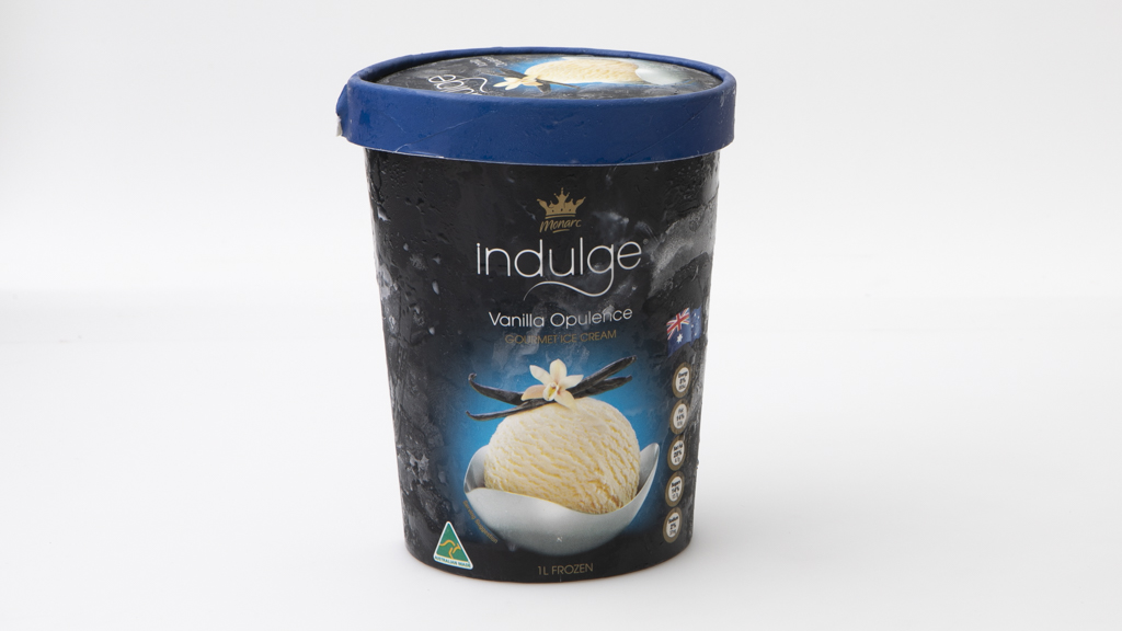 Aldi’s Monarc Indulge Vanilla Opulence is a premium ice cream at a bargain price.