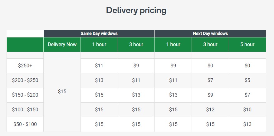 For Woolworths, orders of $250 or more are eligible for free next-day delivery within three- and five-hour windows.