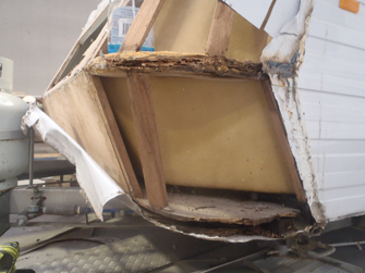 Wet rot in the body of the caravan due to poor sealing and joining – a common and expensive repair issue for owners