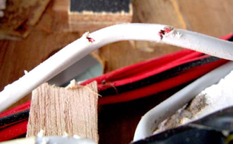 Electrical wiring perforated by staples and screws during manufacture